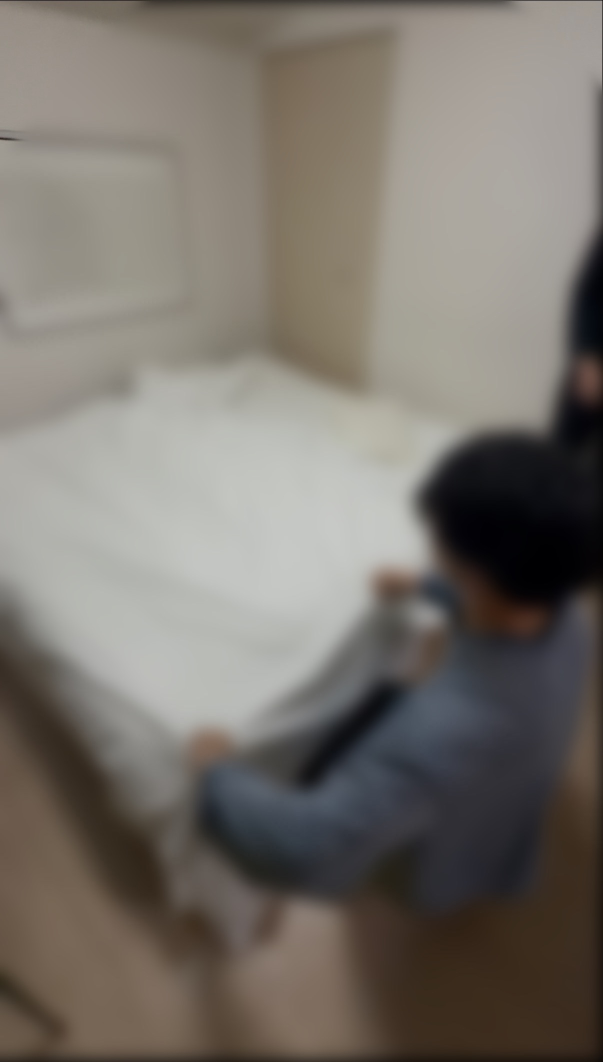 ↑リネンをつけるところを実演している職員さん
