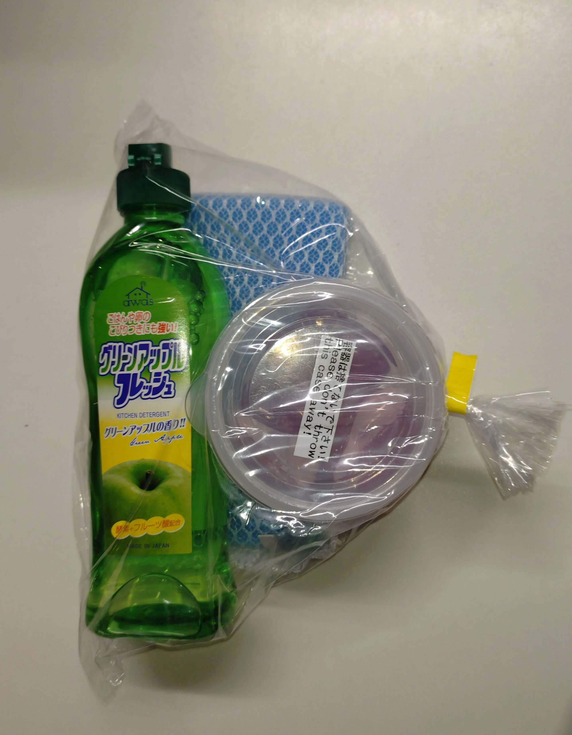 食器用洗剤・スポンジ・ジェルボールを一まとめにしたものです。